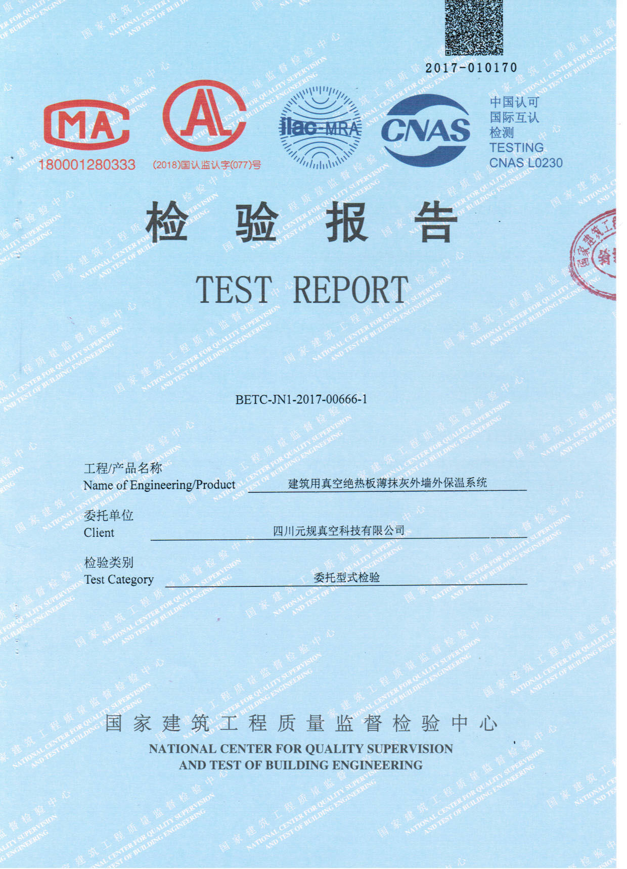 检测报告——建筑用真空绝热板薄抹灰外墙外保温系统
